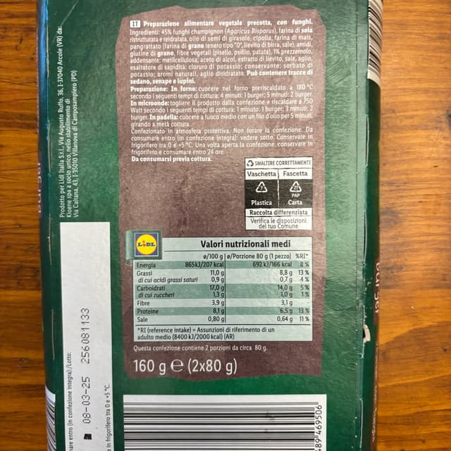 Burger vegetali ai funghi della Vemondo a base di farina di soia. I miei preferiti della linea fissa, si sente tantissimo il sapore di funghi e sono belli morbidi e gustosi. Niente male anche a livello di ingredienti e valori nutrizionali. Vi consiglio di controllare come sono fatti rimuovendo un po’ la carta prima di comprarli perchè spesso rotti e deformati😅. Al di la di questo se amate i funghi come me dovete provarli!🍄🟫