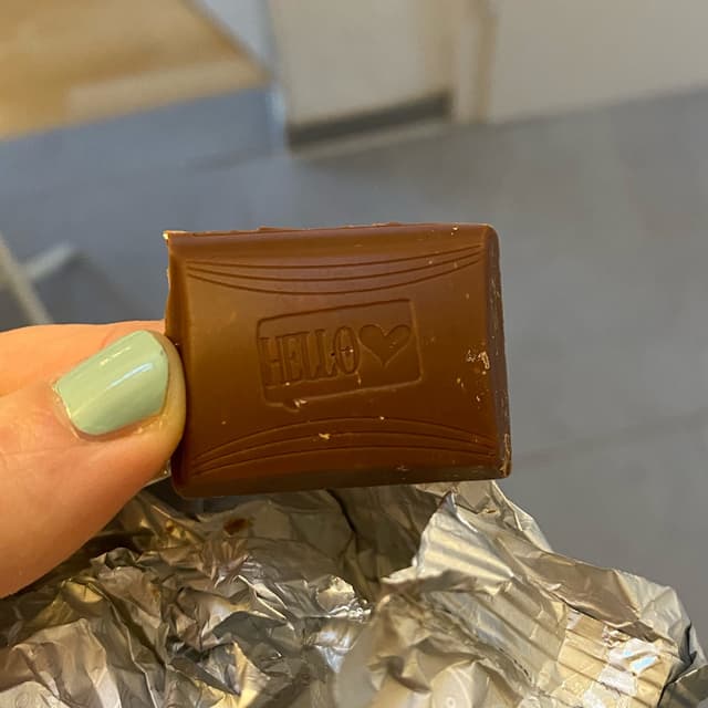 Nice, salty almond chocolate, thick and sweet at the same time. I love the fact each choco block has a cute “hello” writing on top. The chocolate itself was good, with nice chunks of almonds, but i would have added more salt, and made the chocolate less sweet-milky