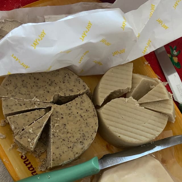 Alternativa vegetale al formaggio stagionato, bella consistenza sbriciolosa, gusto che pizzica, ottimo come aperitivo accompagnato alle pizzette fritte 😋 Ormai si può presentare un signor tagliere di veg formaggi ! 🙌🙌 #vegancheese #cheese #vegancheeselover #formaggiovegan #fakecheese