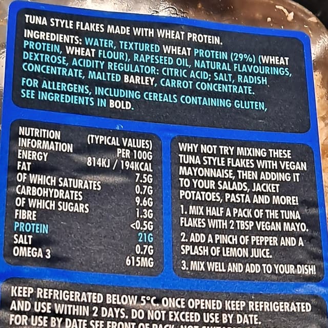 Quite hard to rate this tuna-alternative as it tasted really different the 2 times I had it, quite nice the first time, not so much the second. Either way, the taste and texture is nice and relatively similar to tuna. I'd recommend trying it once to see if it matches your preference.