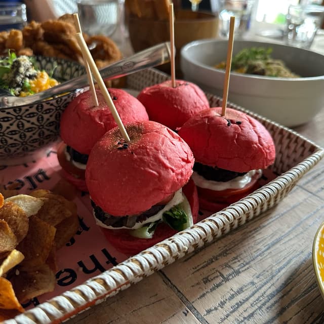 I don’t like the pink #burger 🍔 and frankly neither did anyone else 😅 but none of us with the exception of @m1tch9i are big #fastfood goths anyways ✌️ Then again I didn’t even try it this time round 😂