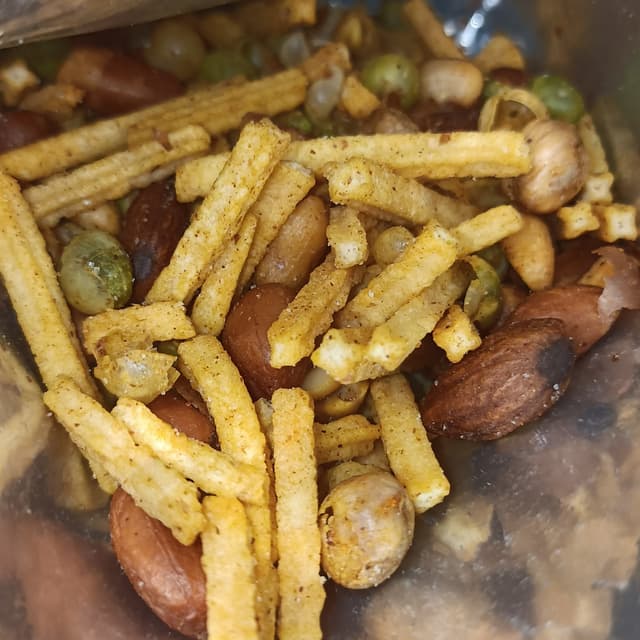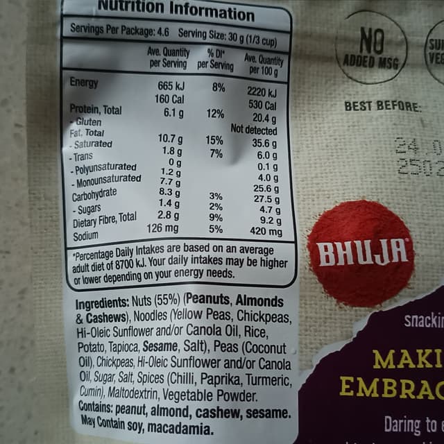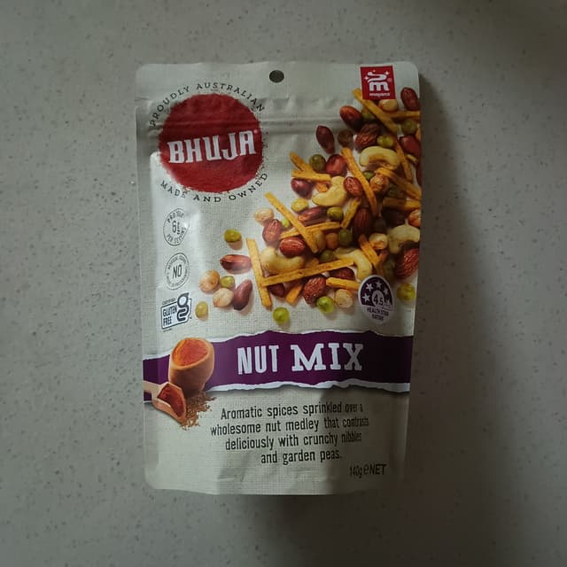A tasty, savoury collection of crispy noodle pieces and flavoursome nuts. Mostly peanuts and almonds though for nuts. It's also scraped together a 4.5 health star rating, I assume in the category of snack foods, as it does have some protein and fibre. #nuts #snack