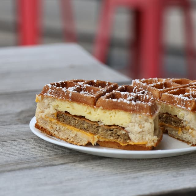 If you live near Columbus and you haven't tried Vida's stuffed waffles, you ain't living.🌿 Everything about this was absolutely fantastic. The #waffle batter itself is soooo good. It's sweet and buttery and perfection. They have different fillings, and this was delicious. It had #seitan sausage, vegan egg, and cheese. It was the perfect combination of sweet and savory.