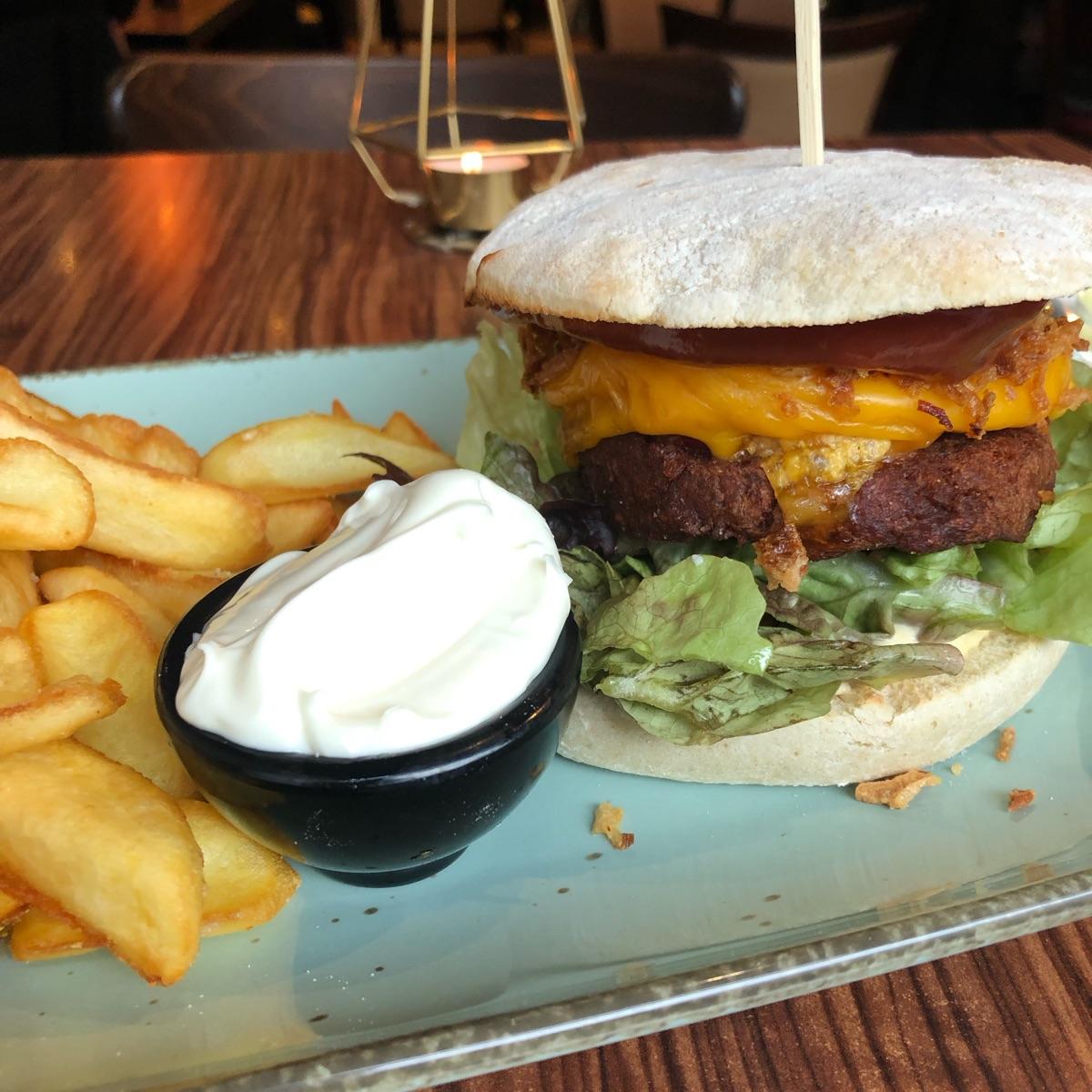 This was at the location near the university, it’s not listed yet, but should be :) The cheeseburger was real yummy, I ordered “their” soy patty - you get to choose, always such fun - which tasted so so good. They do have a beyond meat patty as well, but that’s too real for me ;) The fries were excellent (they have a different shape I’ve never seen before). I can highly recommend this place, not just for the awesome food, but also for the dedicated team and overall atmosphere. And for Mogli the dog, who comes to greet you at the door. 😍