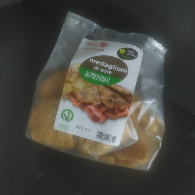 Ho utilizzato questi medaglioni di soia per fare una specie di cosciotti veg aggiungendo funghi e spezie. Dopo di che ho rivestito con carta di riso per dare l'effetto pelle! La consistenza che danno i medaglioni è spettacolare fibrosa ma morbidissima! Il sapore chiaramente è molto lontano dalla carne (fortunatamente)