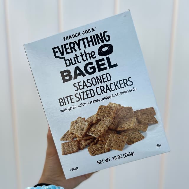 these Trader Joe’s Everything But the Bagel Seasoned Bite Sized Crackers are pretty decent! they deliver just the right amount of garlic, onion, and seeds so the flavor is definitely there, but isn’t too much to overwhelm (like with cheeze or other charcuterie snacks)! 🥯🧅🧄