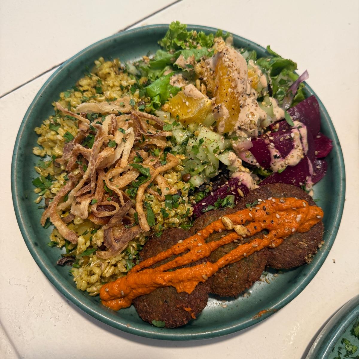 Muy rico. Otro plato bien balanceado. Como observaciones, no decía en el menú que venía con fruta y es un sabor raro, aunque no quedaba nada mal. La próxima elijo otro pero muy rico.
