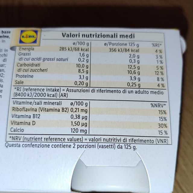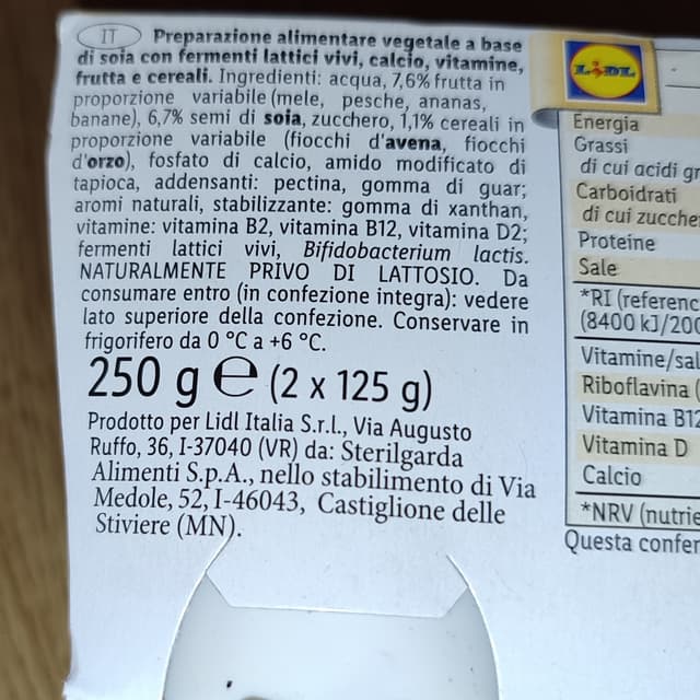 Vemondo🌱 yogurt vegetale al gusto frutta🍎🍍🍑🍌 e cereali🌾 acquistato in un supermercato Lidl a Roma.📌