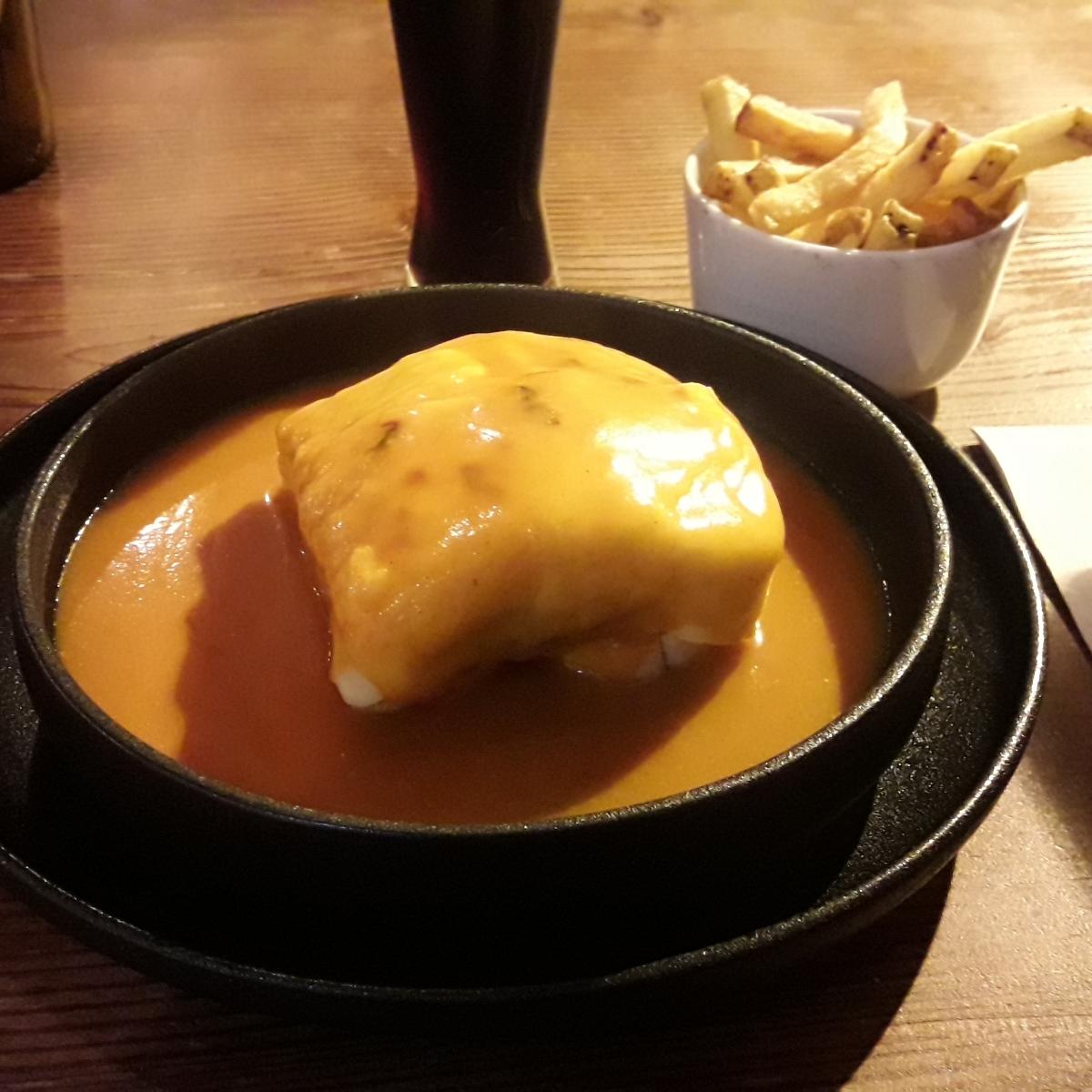 Muy bueno, contundente y sabroso. Precio algo elevado. Sandwich majo cubierto de rica salsa y con keso gratinado, acompañado de papas