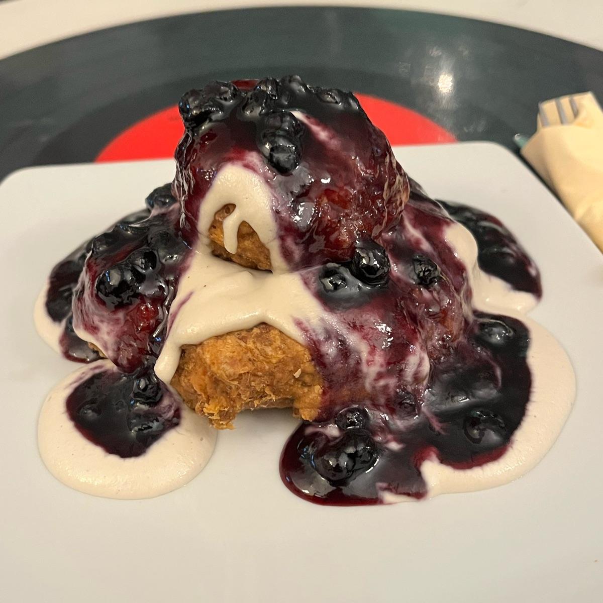 L’ultima recensione che fa riferimento al mio viaggio in Romania è lui, il principe dei dessert rumeni, nonché il mio piatto preferito tra tutti i cibi deliziosi che ho assaggiato durante la vacanza: papanasi. Si tratta di due frittelle di dimensioni diverse fritte e ricoperte con una crema al formaggio veg e una marmellata di frutti rossi.