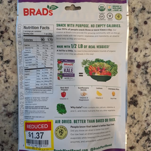 These were so good! Seriously addicting; I could eat the whole bag in one sitting, which would be fine because its not too many calories! The kale is crunchy but also a little soft, if that makes any sense. It's hard to describe, but I loved the texture. It also had a very light garlicky flavor that wasn't too overpowering. Highly recommend