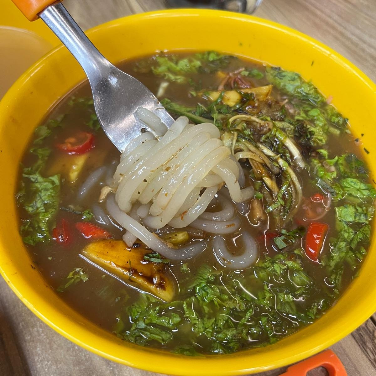 Very good assam laksa broth. Thick, tangy and spicy. The rice noodles were a little different from regular laksa beehoon. A little more chewy, maybe with a blend of tapioca or sweet potato flour. Very nice. Not much protein though, only minimal soy fish. Had some pineapples, red chillies and lettuce in it. Overall tasty.