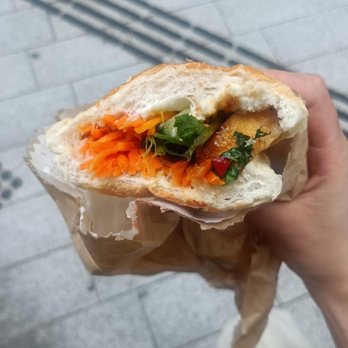Fresh and tasty with definitely crispy tofu! Would be improved with a vegan substitute for pâté or mayo tho :) #banhmi #sandwich #tofu #vietnamese