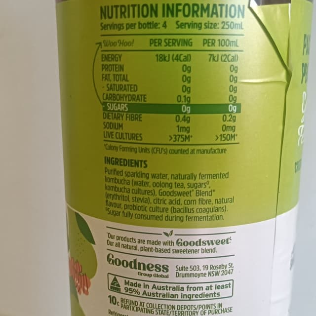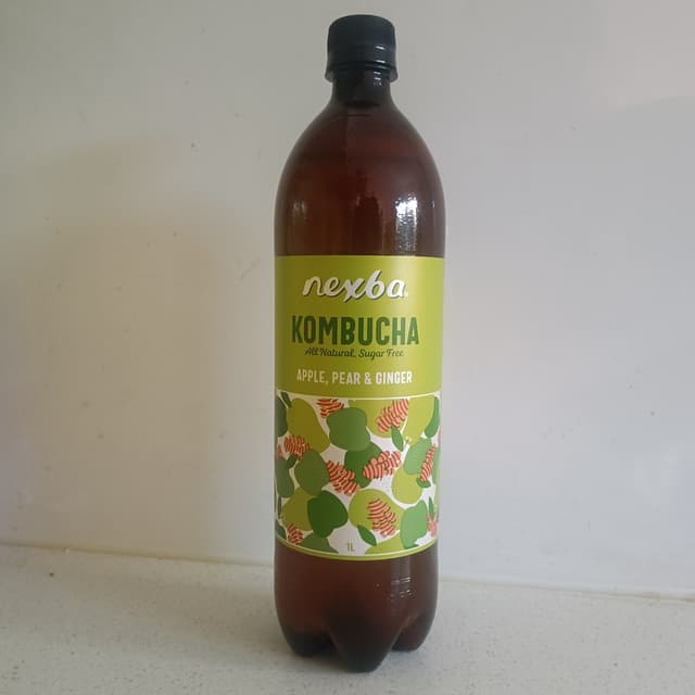 A biggg non-refrigerated bottle of kombucha for slightly over $3 on sale. Flavours are subtle and aromatic, and there's a teensy (good) level of sweetness, though overall this does feel more like a flavoured slightly bubbly water than a kombucha. In other words, it tastes a bit dilute. #kombucha #pear #drink