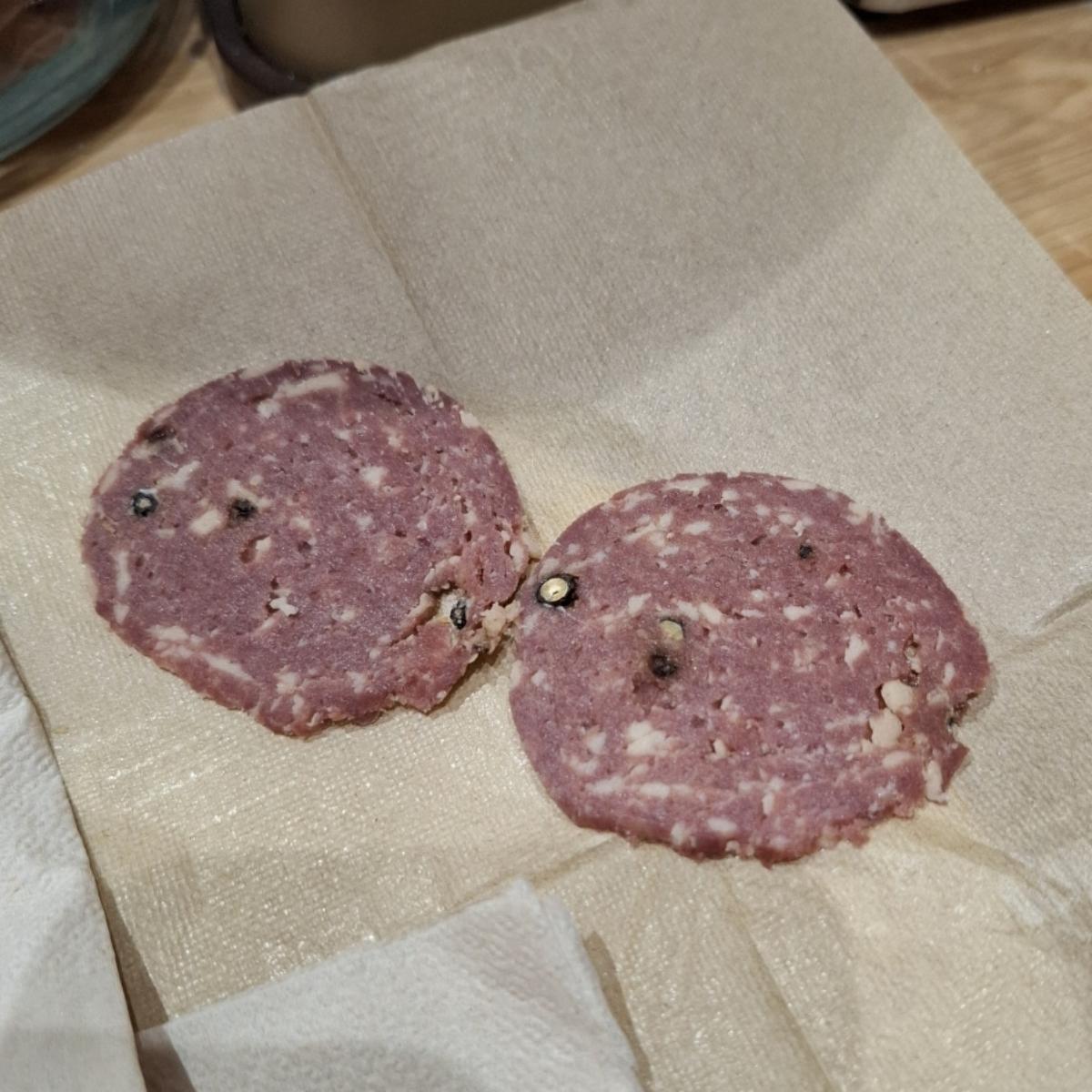 Per ora il salame che alla vista è più simile alla versione tradizionale 🫣 anche il sapore è abbastanza convincente, forse un pò dolciastro, ma lascerei ad altri recensioni più imparziali perché a me il salame non è mai piaciuto e nemmeno nella versione vegana è una cosa che mi attira.