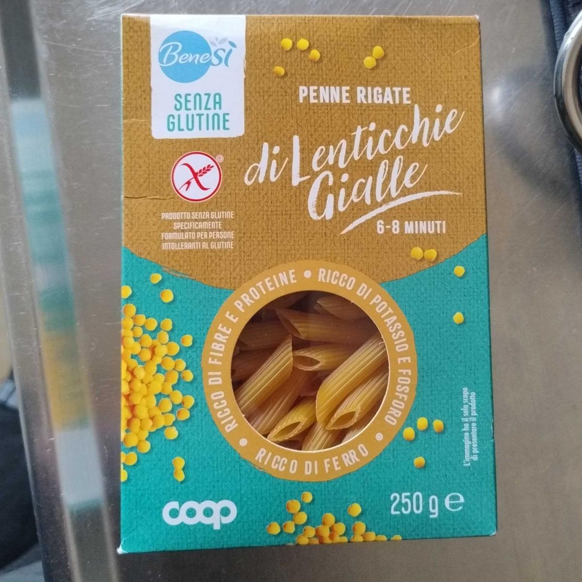 Confezione da 250 grammi di penne rigate realizzate esclusivamente con farina di lenticchie gialle.Ricche di fibre,proteine e sali minerali come ferro,fosforo e potassio.Trovo che questa pasta abbia un sapore molto delicato e abbastanza neutro inoltre diversamente da altre marche provate questa non si é spappolata durante la cottura.