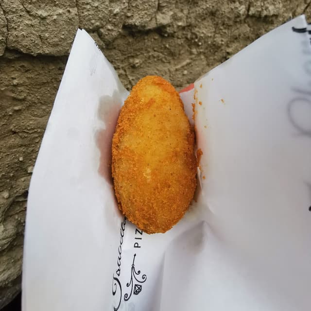 Nonostante non lo abbia apprezzato a pieno per colpa della pessima pizza fritta, questo mi è piaciuto: la frittura è impalpabile e la patata è sapida al punto giusto.