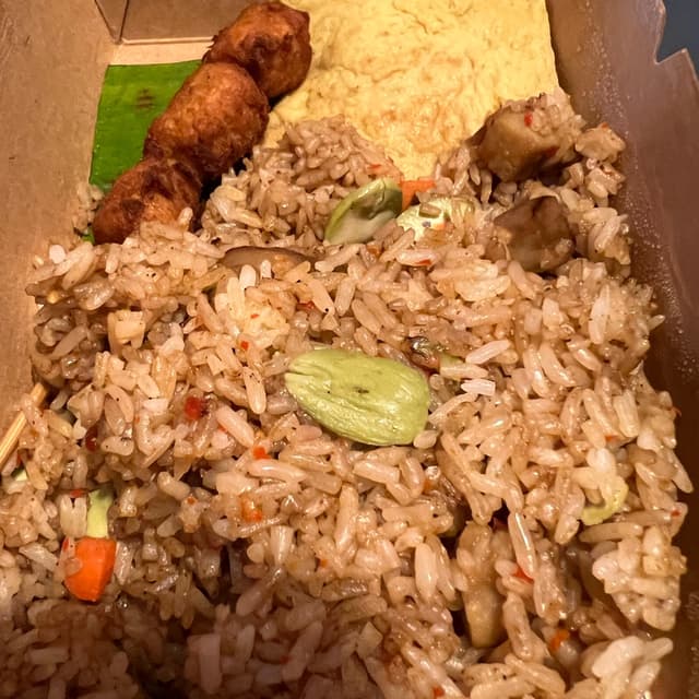 This fried rice was also served with vegan egg 🍳 and vegan satay.