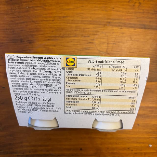 Yogurt di soia con frutta e cereali addizionato di fermenti lattici, calcio e vitamine. La frutta mista è a pezzi e il gusto che esalta maggiormente è sicuramente la banana. C’è una buona proporzione tra frutta e cereali, in questo caso fiocchi di avena e orzo, e personalmente mi piace sentire le diverse consistenze. Molto buono, consigliato!🍌