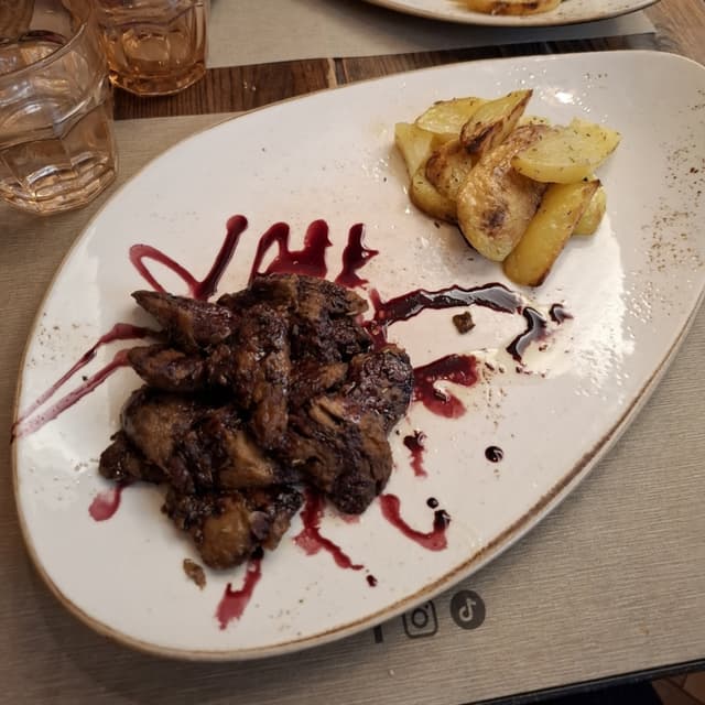 Non cucino spesso il seitan a casa perché nella mia zona trovo solo quello stile suola di ciabatta, quindi approfitto al ristorante incrociando le dita per trovarne uno di qualità. Questo lo era! Morbido e umido anche all'interno, carico di sapore senza essere troppo salato. La porzione mi è sembrata generosa (ma il motivo per cui ho fatto fatica a finirlo non è stata tanto la quantità ma la super colazione fatta poche ore prima da Julietta 🙃)