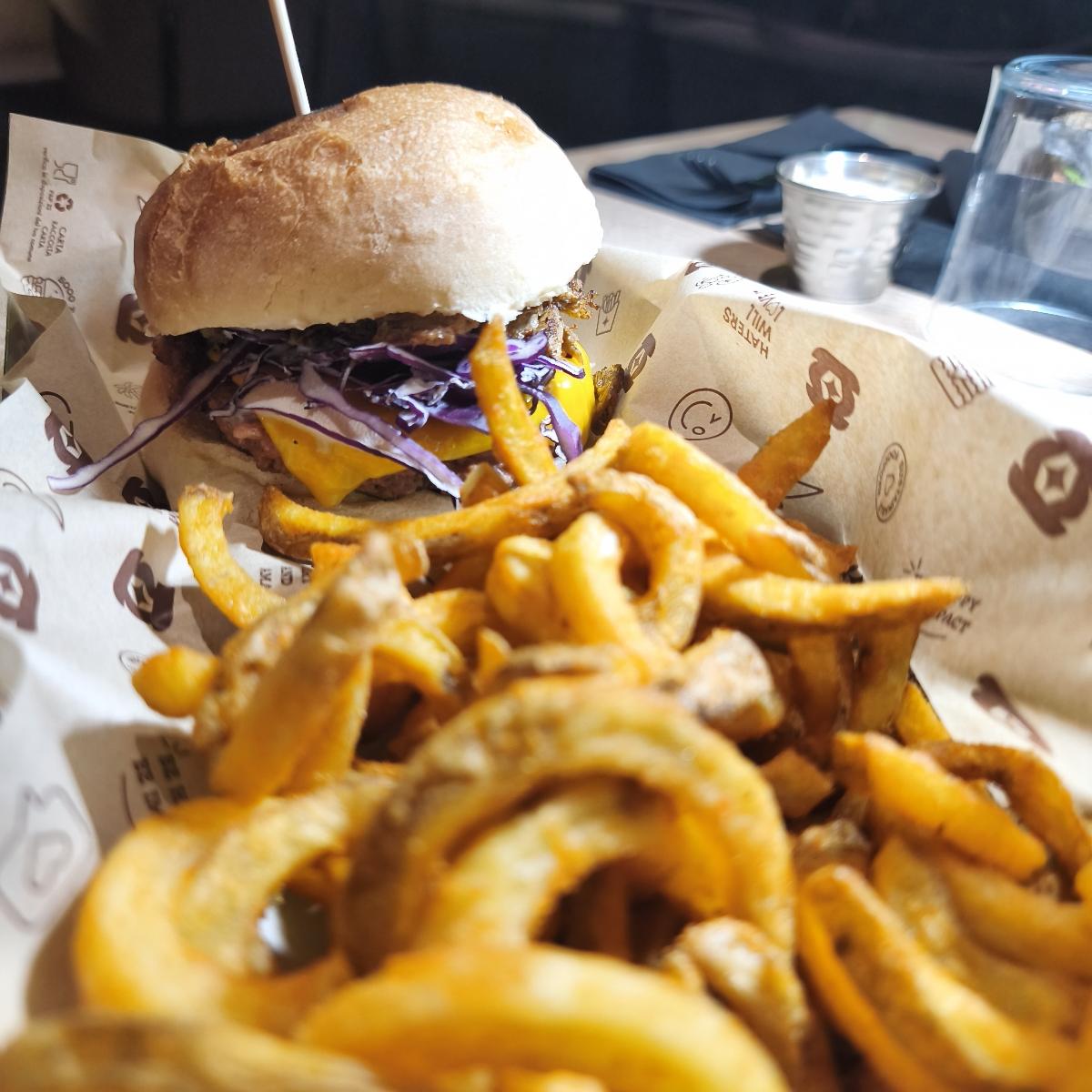 Un 🍔 burger spaziale con patatine fritte al gusto paprika