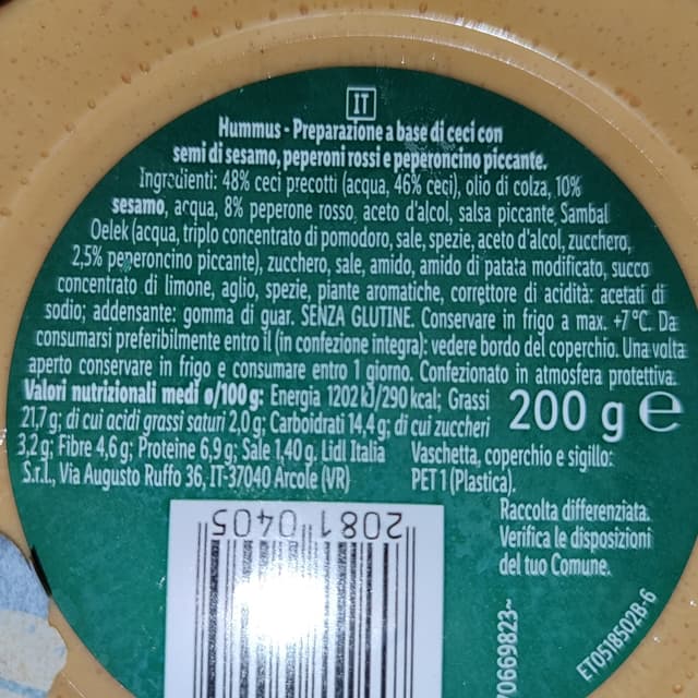 Vemondoš± hummus piccanteš¶ļø acquistato in un supermercato Lidl a Roma.š