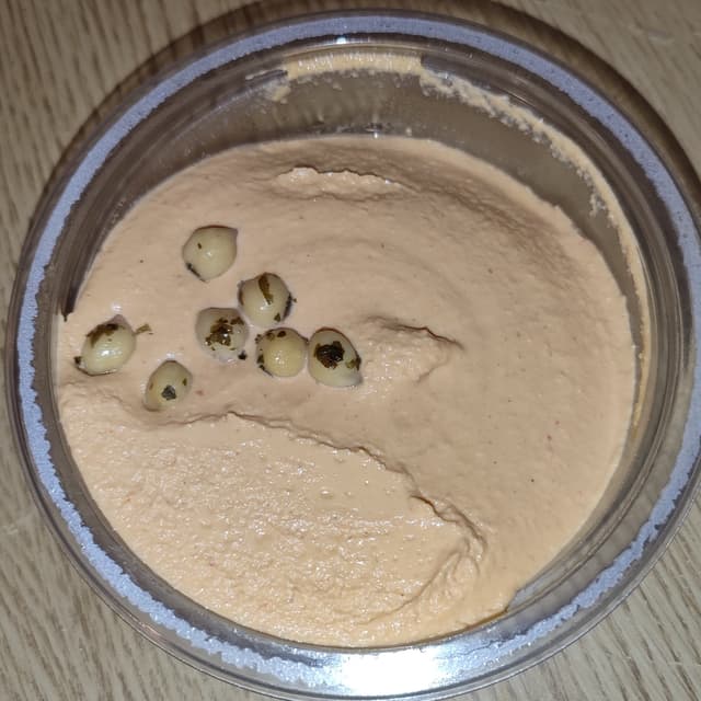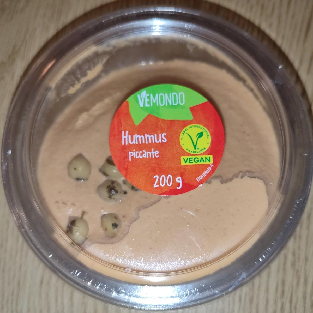 Una delle tante varianti di hummus proposte da Vemondo, davvero troppo buono!! Ć gustosissimo, piccantino ma neanche tanto. Consistenza morbida e cremosa, a guarnizione ci sono anche dei ceci interi.