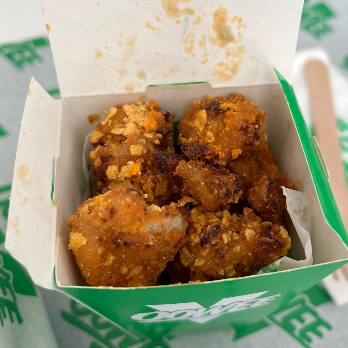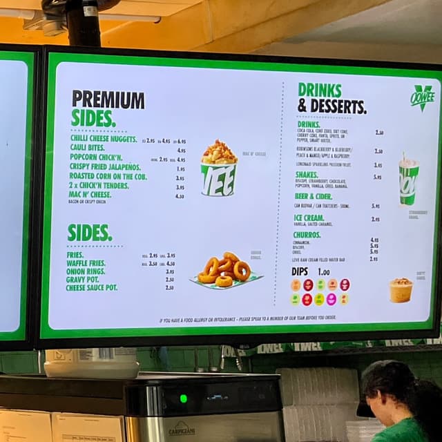 Yum. 😋 These #cauliflower bites are great. My mother in law bought some too and approved amazingly when she rarely eats fried foods. My partner thought they were very salty but they tasted great to me. #sweetdreamsaremadeofgrease We wished there was a table for four we could sit down properly at but there wasn’t any places with chairs with backs. Not so good for the elderly. And the music was quite loud which put them off too. It’s #fastfood so I guess it’s to be expected. We were the only customers as well which makes me worried for them. I want to eat everything on the menu here. It all looks and sounds so good! £4.95