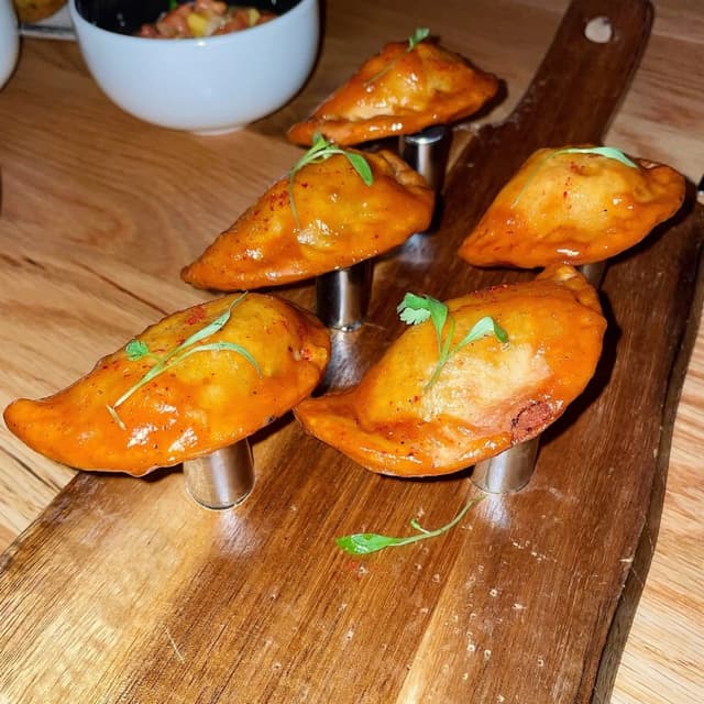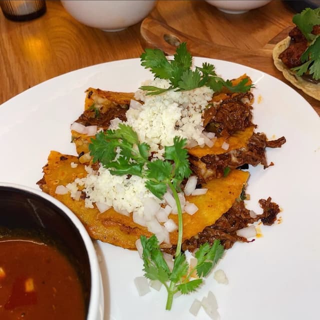 ...pictured are the arepitas, spicy chorizo taco, mushroom tacos, birria tacos, and empanadas 🤤
