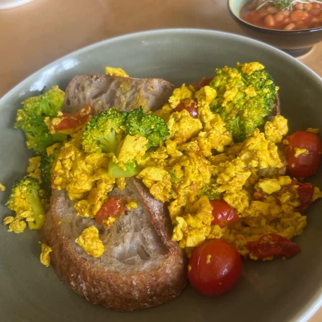 All day brekkie menu here was pretty good. This one comes with a lovely scrambled tofu and broccoli on a beautiful toast.