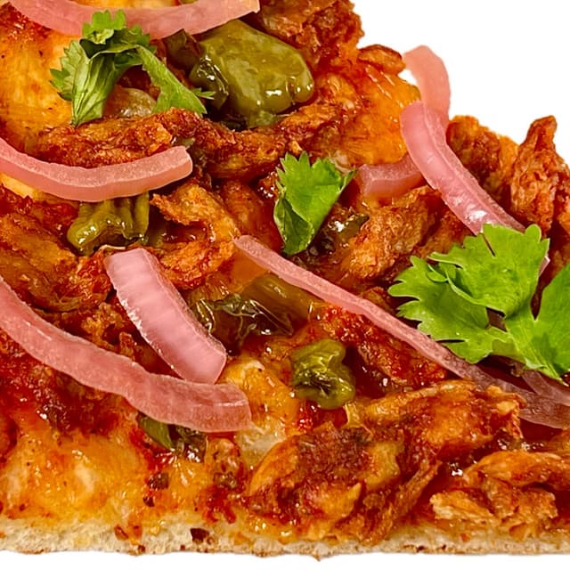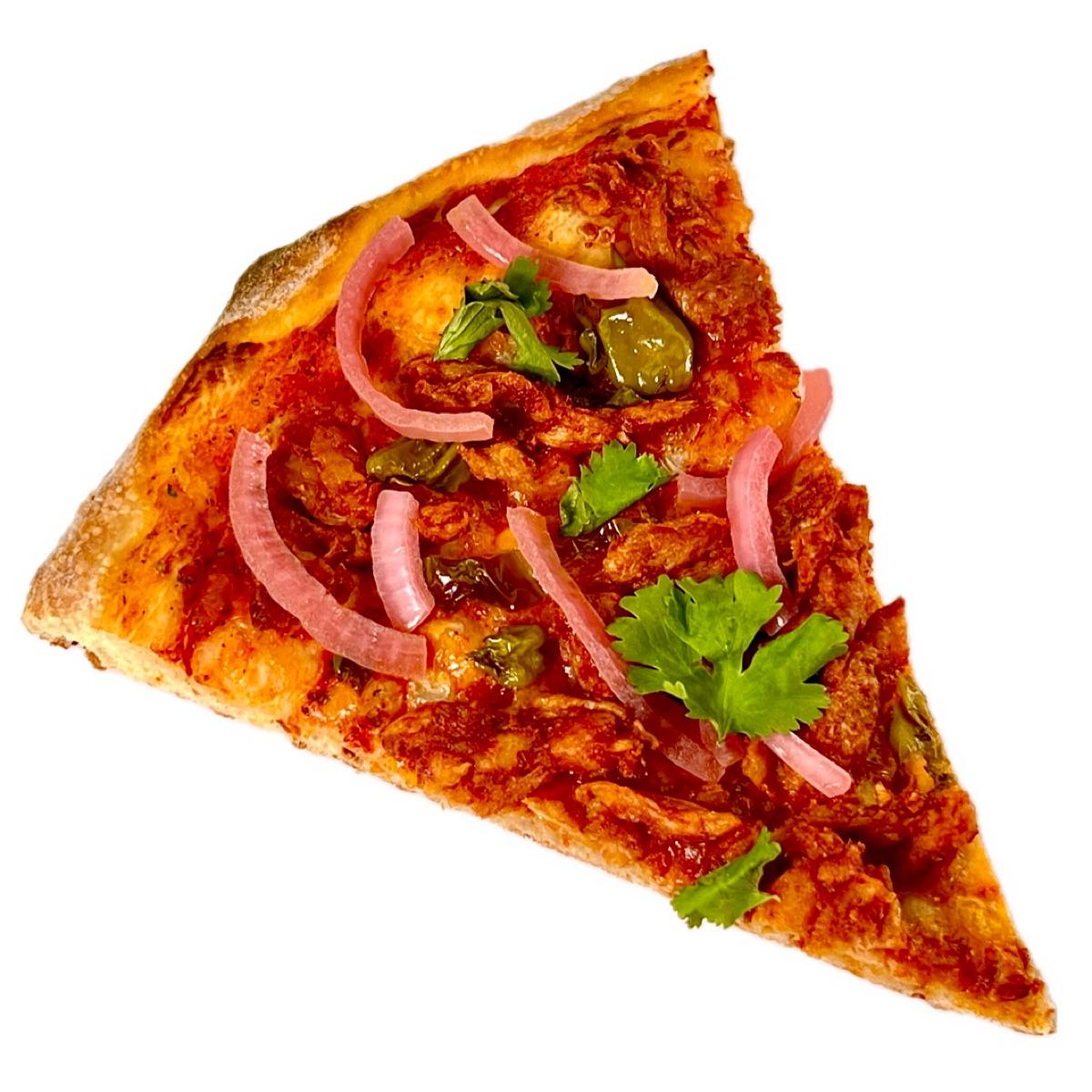 This consisted of spicy BBQ soy curls standing in for 🐥, blistered shishito peppers, 🐄🥛-free cheddar shreds, San Marzano tomato sauce, pickled red onions, and fresh cilantro on a satisfyingly crisp and chewy crust. It had a wonderful combination of smoky, spicy, tangy, and savory. It is a special for Portland Pizza week, which continues through April 20, and a slice is only $4. It is also available as a whole pie ($25) and a gluten-free whole pie ($31.50).