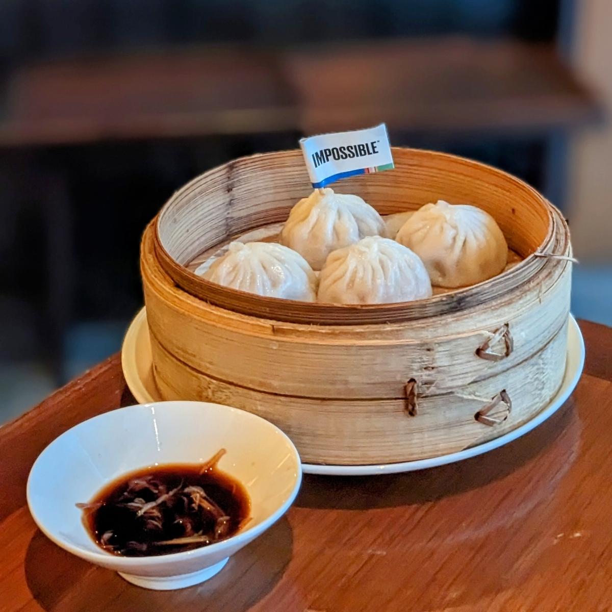 Vegan xiaolongbao is hard to come by, so I was delighted that #Impossible 'pork' was available as an alternative to minced pork! The taste was great, though I did wish there was slightly more broth inside the steamed Shanghai dumplings. 🍲 Served with shredded ginger vinegar dipping sauce; my partner was very amused creating different ginger hairstyles for the baos ahaha. 🫚 ($8.80 for 4 pieces) #sgvegan #veganoptions #chinesefood #dimsum