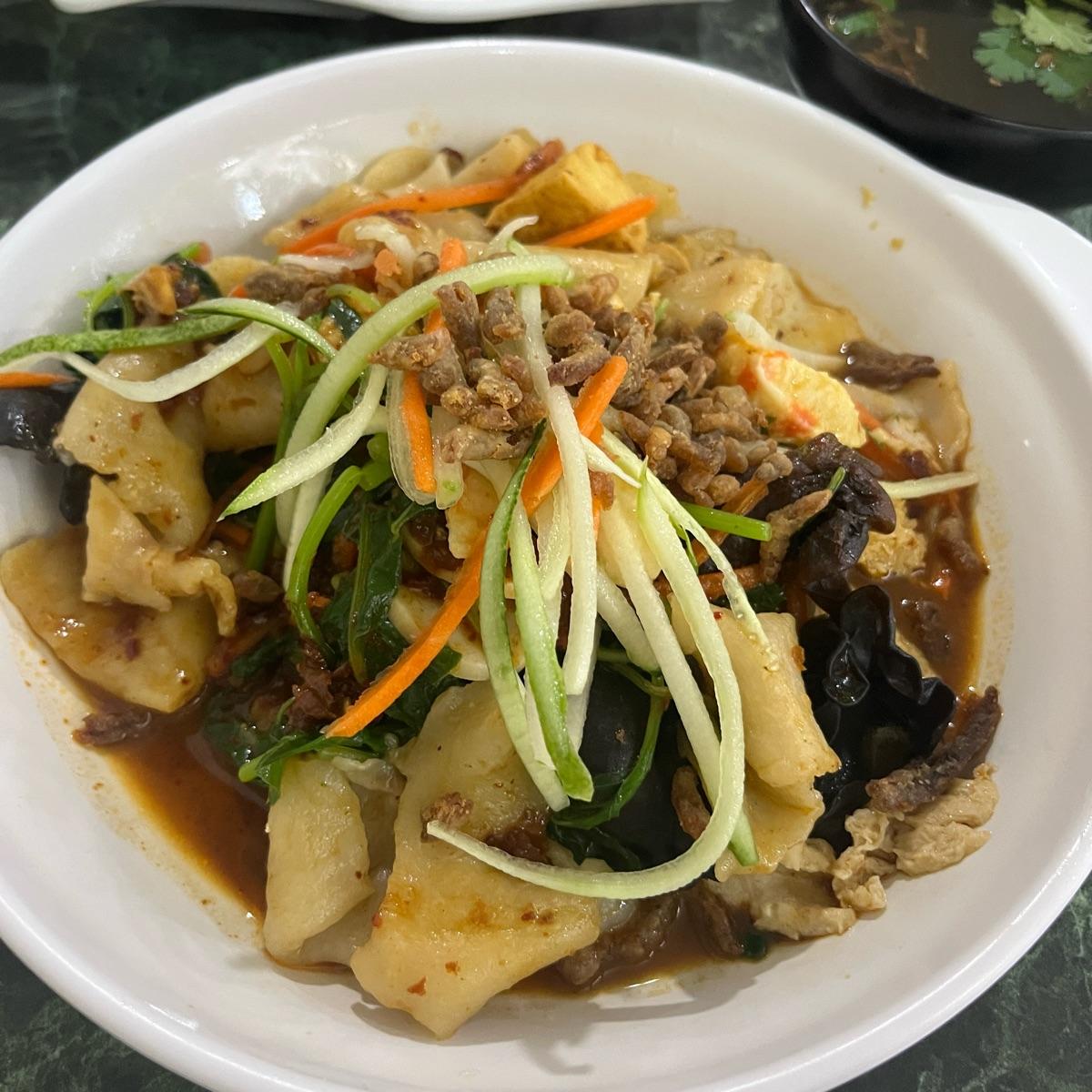 Generous serving of black fungus and other ingredients like the soup version(mock fish and prawns, tofu, spinach, veg anchovies). The sauce was spicy and a little sweet. I asked for less oil and less salt. Love the mee hoon kueh, so chewy and delicious tossed in the sauce.