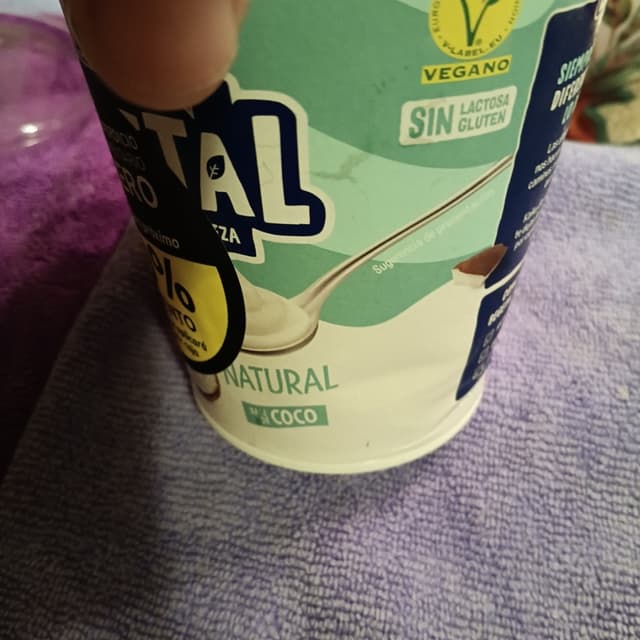 Yogurt vegetal con sabor a coco sin lactosa y sin glúten.