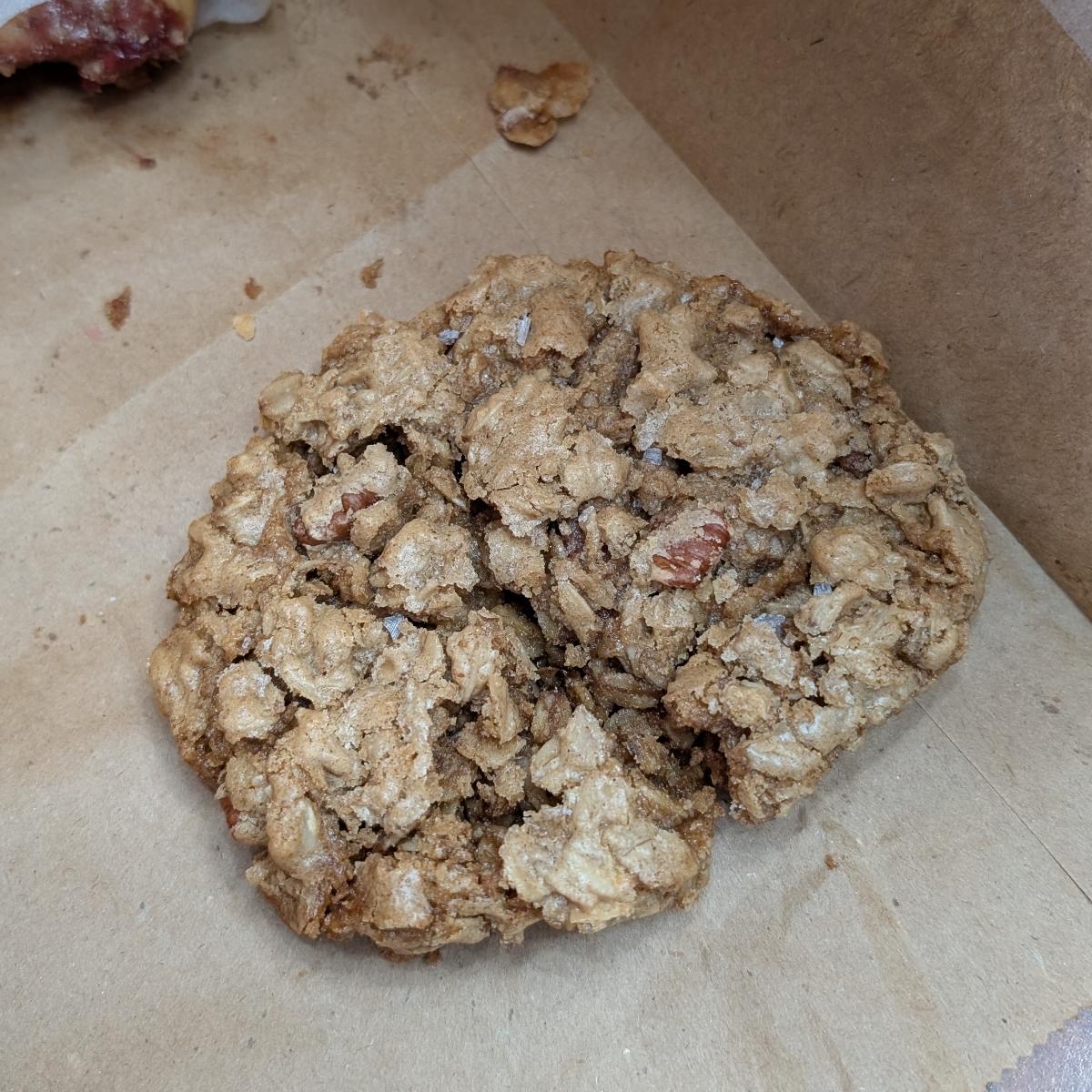 This sounded so good I had to try it. I ate it the next day so it wasn't as fresh but it smelled so good coming out of the microwave. Lots of texture from the oatmeal and nuts. Okay cookie overall.