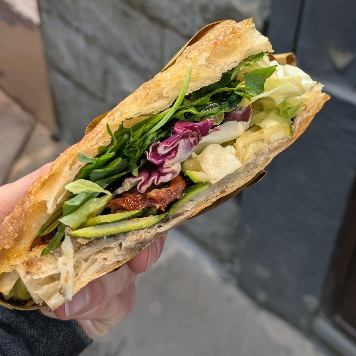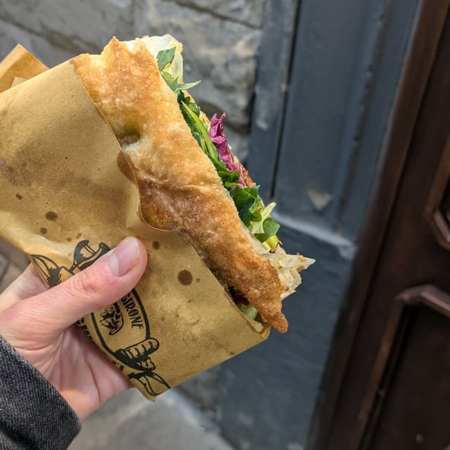 Abbiamo trovato questo posticino piccolo che sembrava meno turistico di altri, aveva una bella atmosfera con il personale giovane e simpatico. Abbiamo scelto l'unica schiacciata vegana che c'era ma immagino che volendo si possano anche veganizzare delle altre. Impasto delizioso, leggero e croccante, il ripieno poteva andare meglio, avrei voluto sentire di piu la salsa al tartufo.