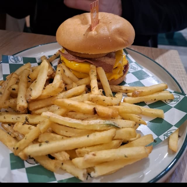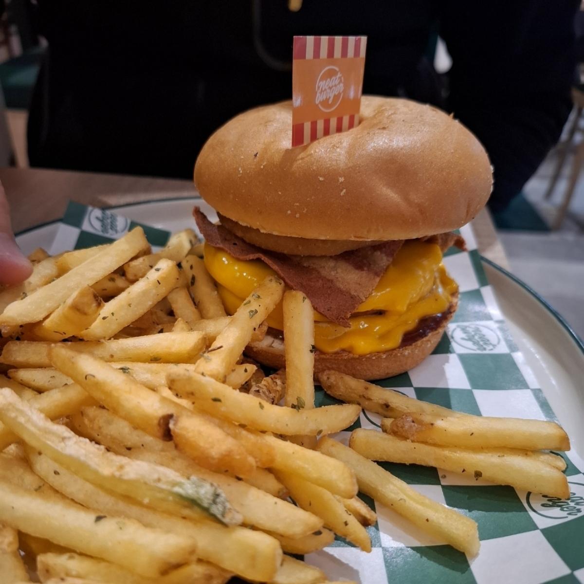 Ho già detto che Neat Burger non mi ha convinta nella rece precedente e non vorrei infierire, né perdere il mio patentino di Abillioners guadagnato con fatica, quindi passiamo al panino: bun semplice farcito con doppio burger, cheddar, bacon, anello di cipolla fritto, salsa bbq e maionese.
