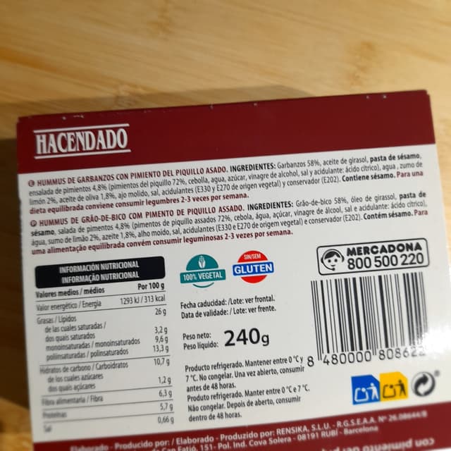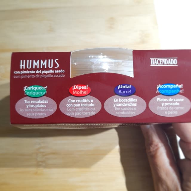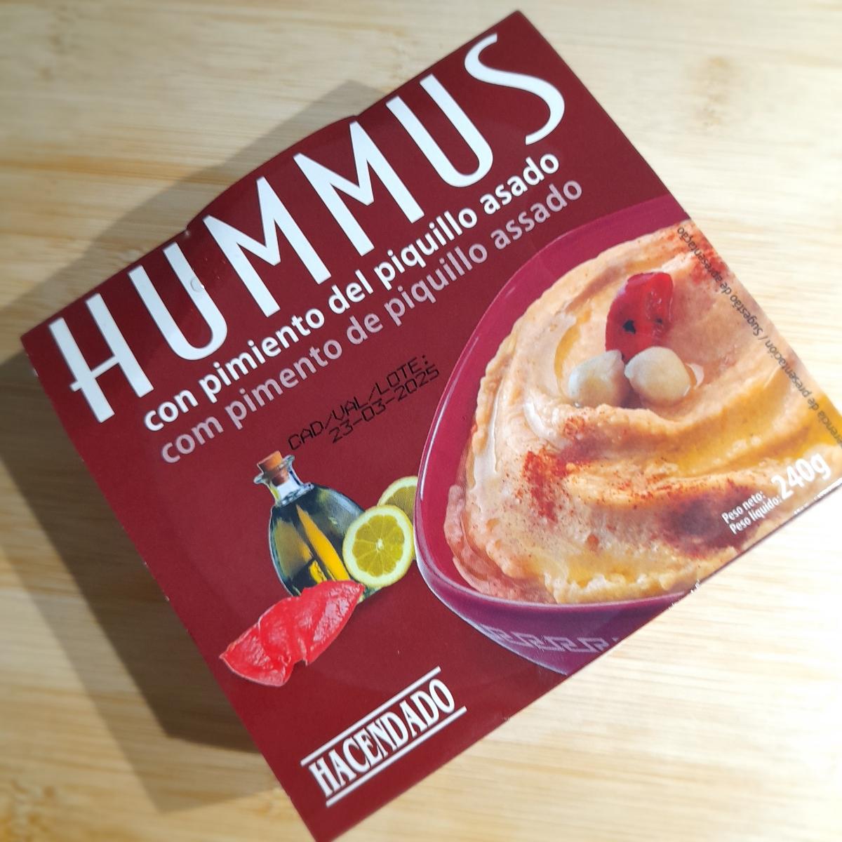 I usually don't buy #hummus at Mercadona but on vacation it was the closest supermarket. This version has #pimientosdelpiquillo (roasted piquillo peppers) and was actually pretty good! It is creamy and the pepper flavor is prominent and well-balanced with the chick peas.