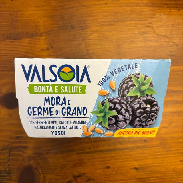 Yogurt di soia alla mora e germe di grano. Il mio preferito della linea, finalmente un gusto non scontato. Dolce al punto giusto, dentro ci sono i pezzettini di grano che a me non danno fastidio anzi, compensano bene la “liquidità” tipica degli yogurt vegetale. Lo mangia volentieri anche mio padre (il che è dire🫠) Consiglio!🫐