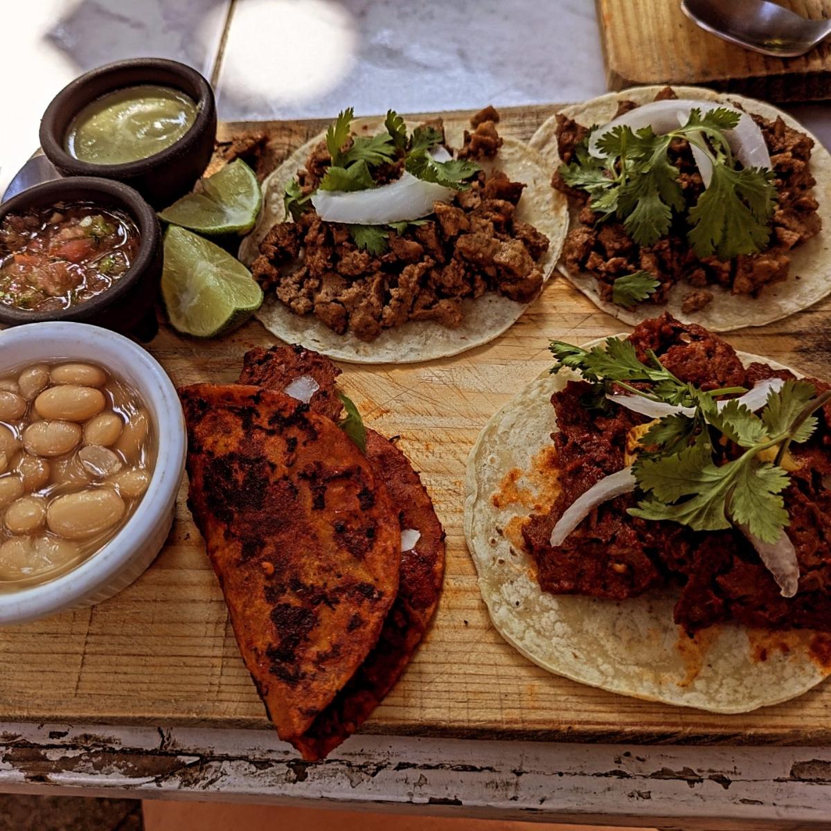 The tacos are delicious. The asada and birria tacos were my favorite but they were all delicious. The salsas were delicious and spicy! Everything tasted fresh!