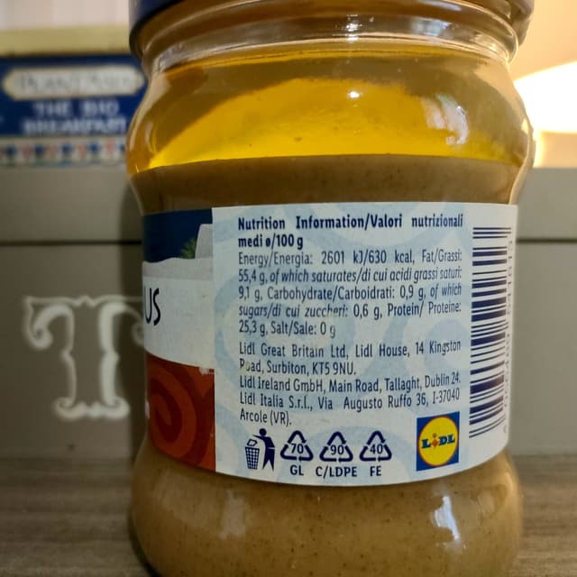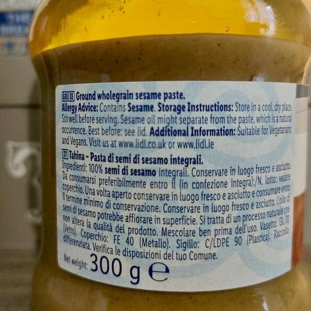 Salsa tahini integrale,io la uso giusto per fare hummus o salse simili, perché i generale non la amo,allappa troppo(qualunque marca,un generale).