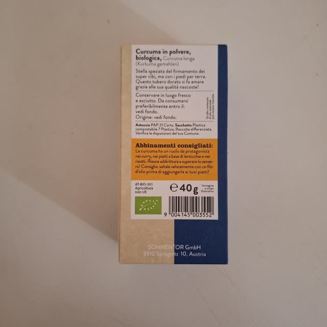 Curcuma bio della mia marca preferita. Buon sapore, la uso in molte ricette oltre che per dare colore anche per il suo gusto facile da abbinare.
