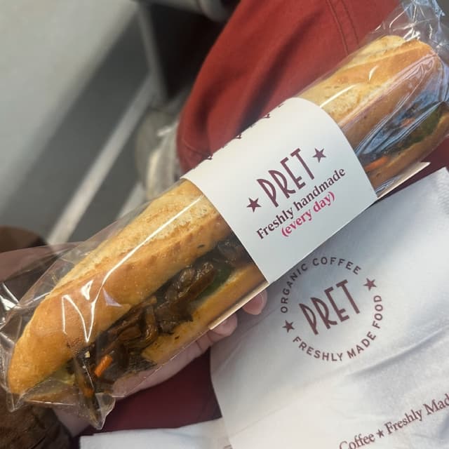This was fairly disappointing to be honest, I found the filling to be lacklustre and didn’t understand the BBQ sauce inside a Viet inspired sandwich. I feel like overall it was very flat tasting and unsatisfying in terms of texture . Could have done with marinated tofu as well as the mushrooms to make it worth the price and more filling #banhmi #sandwich #pretamanger #pret #lunch