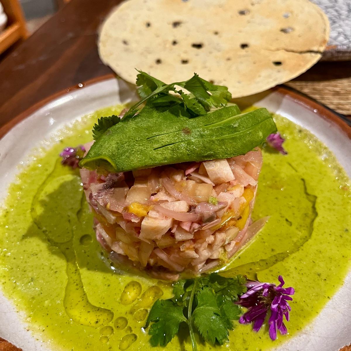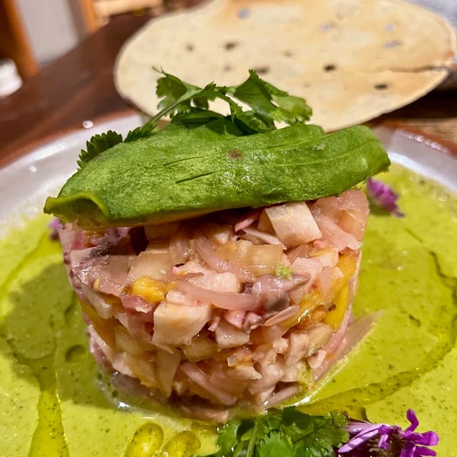 Otra vez tuve la suerte de encontrarme con este platillo y está súper fresco y delicioso. Es un ceviche que lleva mango, jicama y champiñones decorado con aguacate y cilantro. Me encantó la presentación 🤩 La porción es adecuada para 2 personas. Lo único malo es que hay que esperar todo el año para que vuelvan a tener sus especiales 😅 #veganceviche #fishless #leavethefishinthesea #goveganfortheanimals #goveganfortheplanet