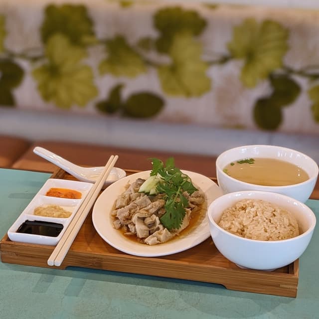 Generous plate of 'steamed chicken', which was described in the menu as being soy-based but resembled seitan to me. The texture wasn't quite like the real deal but the flavour certainly was! Topped with some cucumber slices as well. 🍗🥒 The 'chicken' rice was fragrant and I appreciated the fact that white rice could be swapped to brown rice. 🍚 Served with vegetable broth alongside housemade chilli, ginger, and dark soya sauce. 🌶️🫚 Overall impressively tasty and relatively similar to what I remember Hainanese chicken rice to be, albeit very oily. ($15) #sgvegan #veganoptions