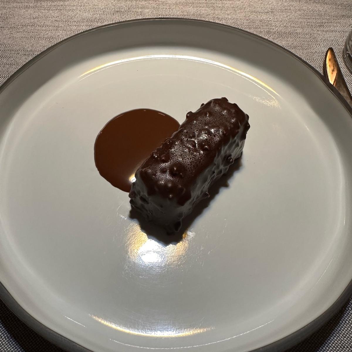 anche qui un normalissimo dessert al cioccolato fondente con dentro una parte cremosa in stile gianduia immagino. nulla di eclatante. la salsa al vermouth abbastanza forte forse sovrasta il sapore già spinto del cioccolato fondente..