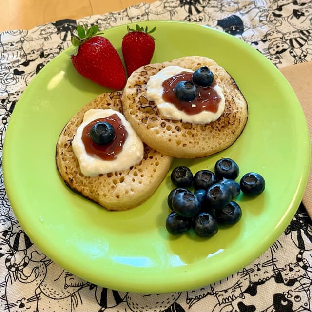 Prima volta che assaggio i crumpets devo dire che sono molto neutri e simili ai pancake. Probabilmente fatti in casa sono un po’ meglio ma comunque sono molto buoni per colazione