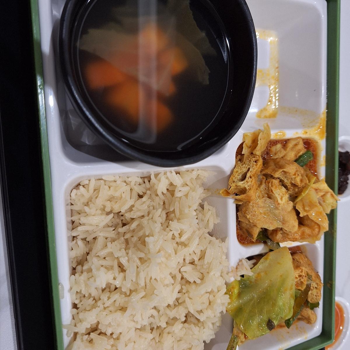 My bento set very simple one, like me - just soup, curry, taupok and sesame rice. Best meal