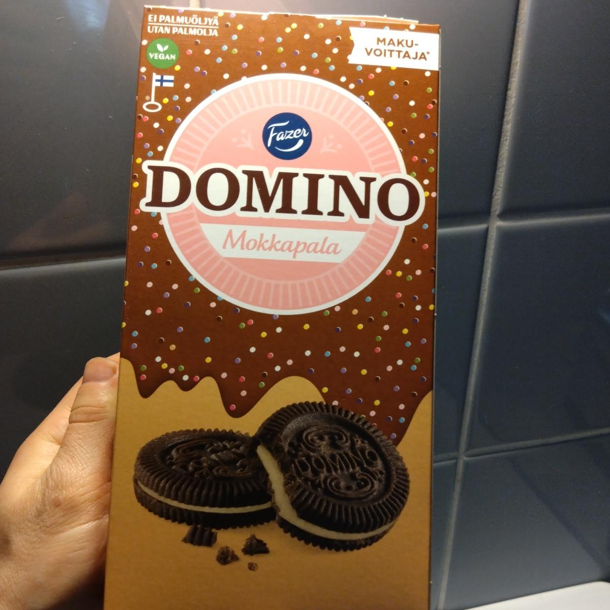 Domino cookies are sandwich cookies similar to Oreos. This flavour is "mokkapala" that is pastry similar to brownie but with coffee included. It does have that coffee flavour in the filling. Domino's are good cookies to offer to non-vegans as well, because they have been made and consumed long time in Finland and people will not turn them down even if they package clearly says they are vegan 😄.