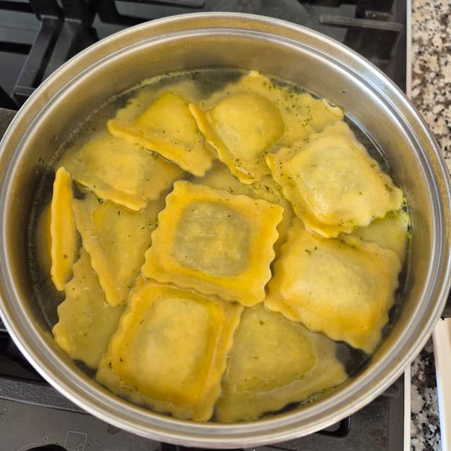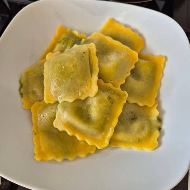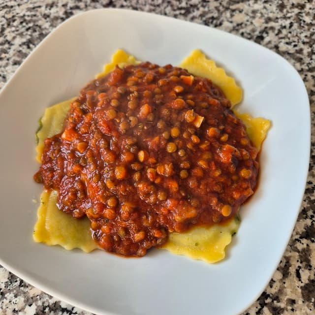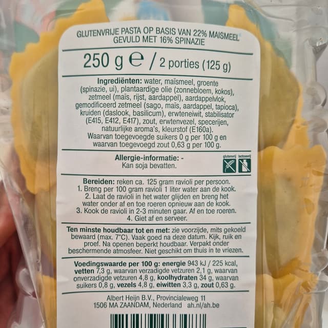 This is a pretty nice ravioli filled with spinach. Dinner served within 10 minutes, very convenient when you don't have time to cook. To make it a filling dinner it does need a pasta sauce with a protein source, so I made it with a pasta sauce with lentils. Although the packaging says this is enough for 2 potions, I would highly disagree and say that this is one dinner and a lunch.